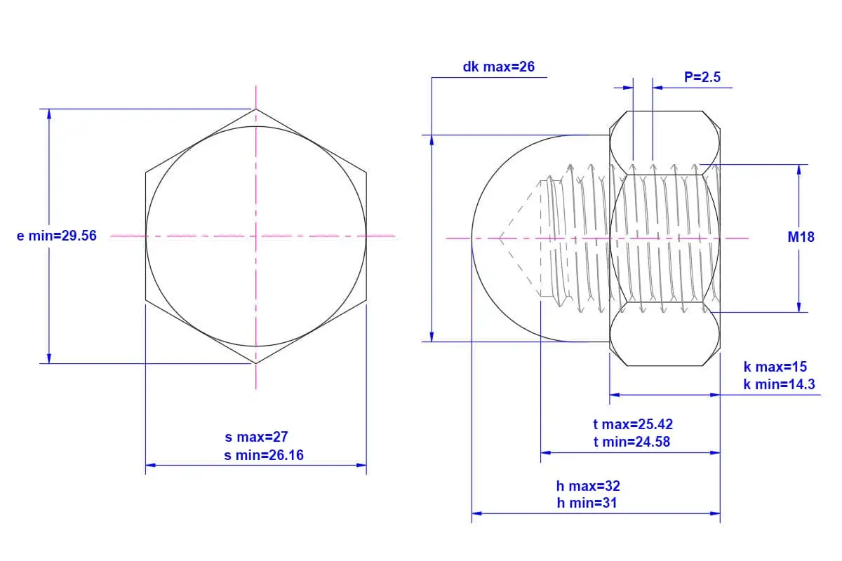 M18 – 201 – Stainless Steel – Hexagon Cap Nut