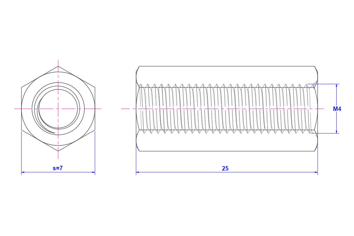 M4X25mm – 304 – Stainless Steel – Hexagonal Connector Nut