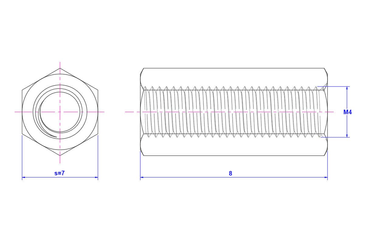 M4X8mm – 304 – Stainless Steel – Hexagonal Connector Nut