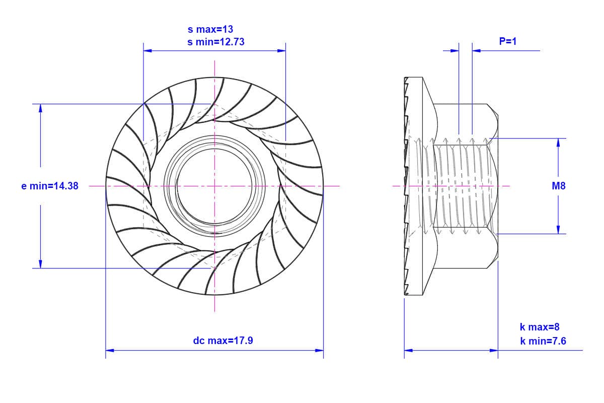 Home Shop Nut Hexagonal Flange Nut 304 - Stainless Steel - Serrated - Hexagonal Flange Nut M8 – 304 – Stainless Steel – Serrated – Hexagonal Flange Nut