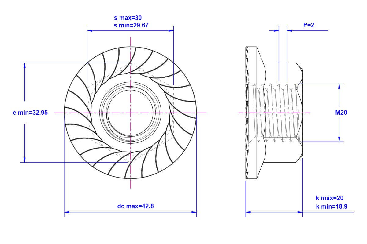 Home Shop Nut Hexagonal Flange Nut Grade 4.8 - Yellow Zinc - Serrated - Hexagonal Flange Nut M20 – Grade 4.8 – Yellow Zinc – Serrated – Hexagonal Flange Nut