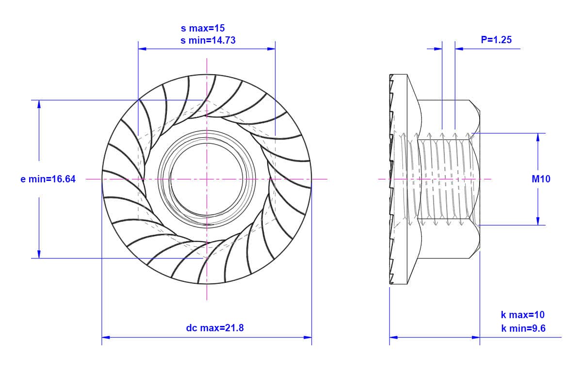 Hexagonal-flange-nut-Toothed-M10