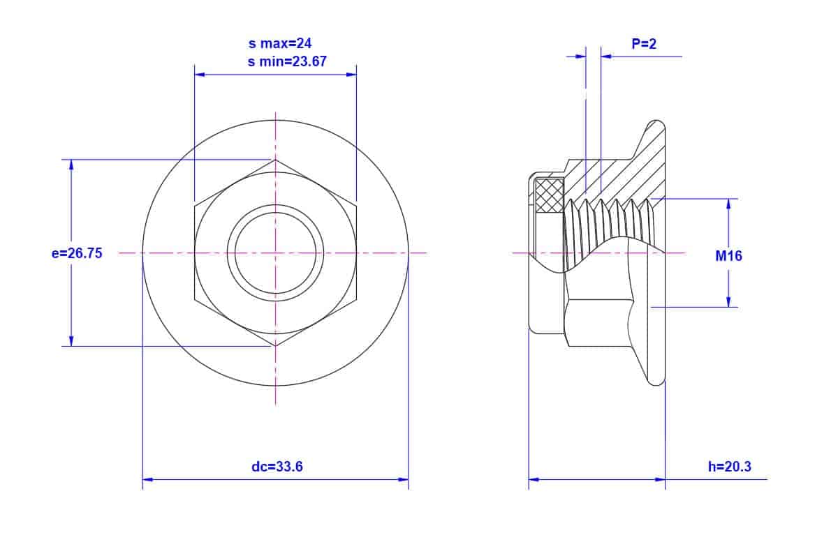 Home Shop Nut Hexagonal Flanged Nylon Lock Nut Grade 10.9 - Black Zinc - Hexagonal Flanged Nylon Lock Nut M16 – Grade 10.9 – Black Oxide – Hexagonal Flanged Nylon Lock Nut