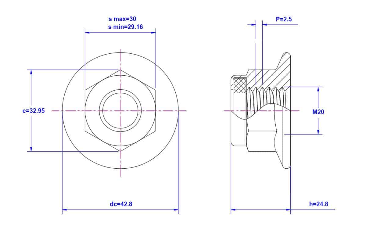 M20 – Grade 10.9 – White Zinc – Hexagonal Flanged Nylon Lock Nut