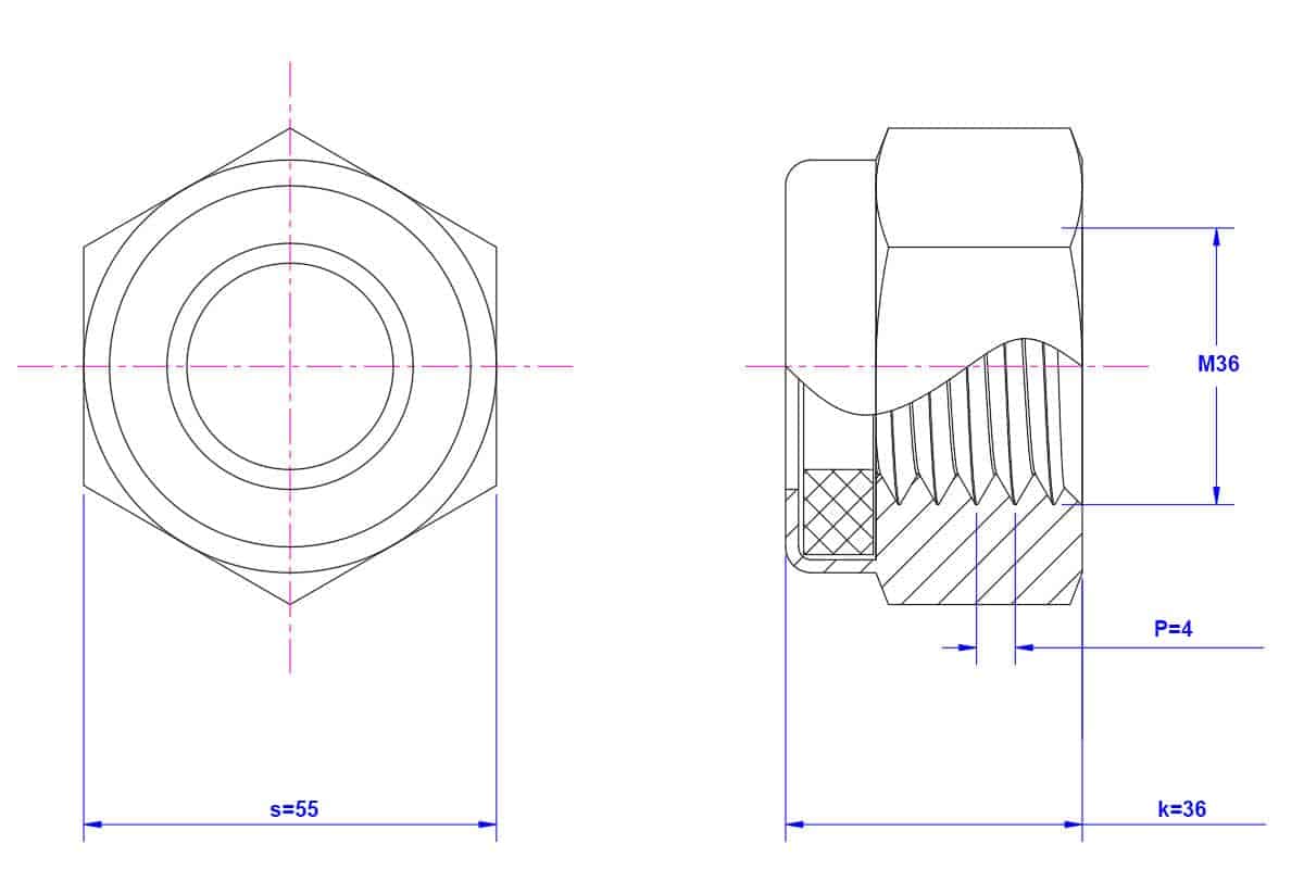 Home Shop Nut Hexagonal Nylon Lock Nut Grade 8.8 - White Zinc - Hexagonal Nylon Lock Nut M36 – Grade 8.8 – White Zinc – Hexagonal Nylon Lock Nut