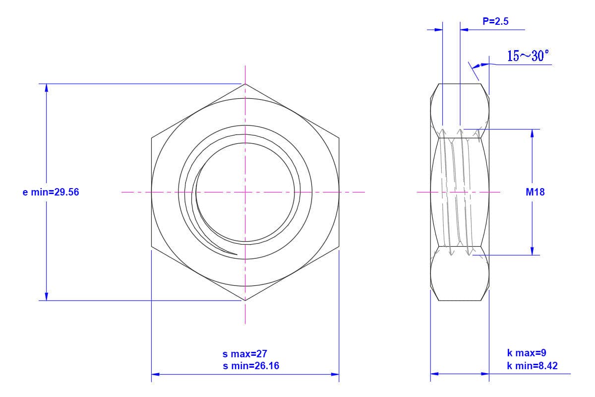 Hexagonal-Thin-Nut-M18
