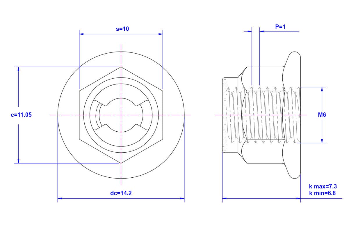 Metal-Hexagonal-Flange-Lock-Nut-M6