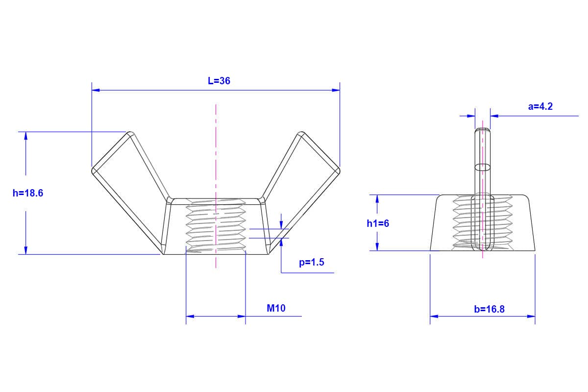 Home Shop Nut Square Wing Nut 304 - Stainless Steel - Square Wing Nut M10 – 304 – Stainless Steel – Square Wing Nut
