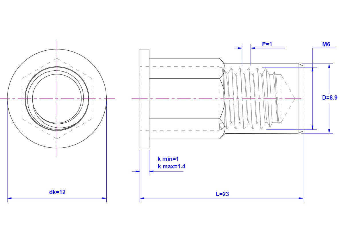 SKU: SN0241003 Categories: 304 - Stainless Steel - Flat Head Half Hexagon Blind Hole Rivet Nut, Flat Head Half Hexagon Blind Hole Rivet Nut, Rivet Nut & Bolt