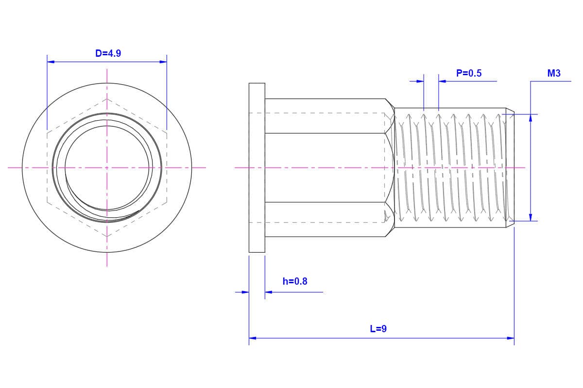Flat-Head-Half-Hexagon-Riveted-Nut-M3