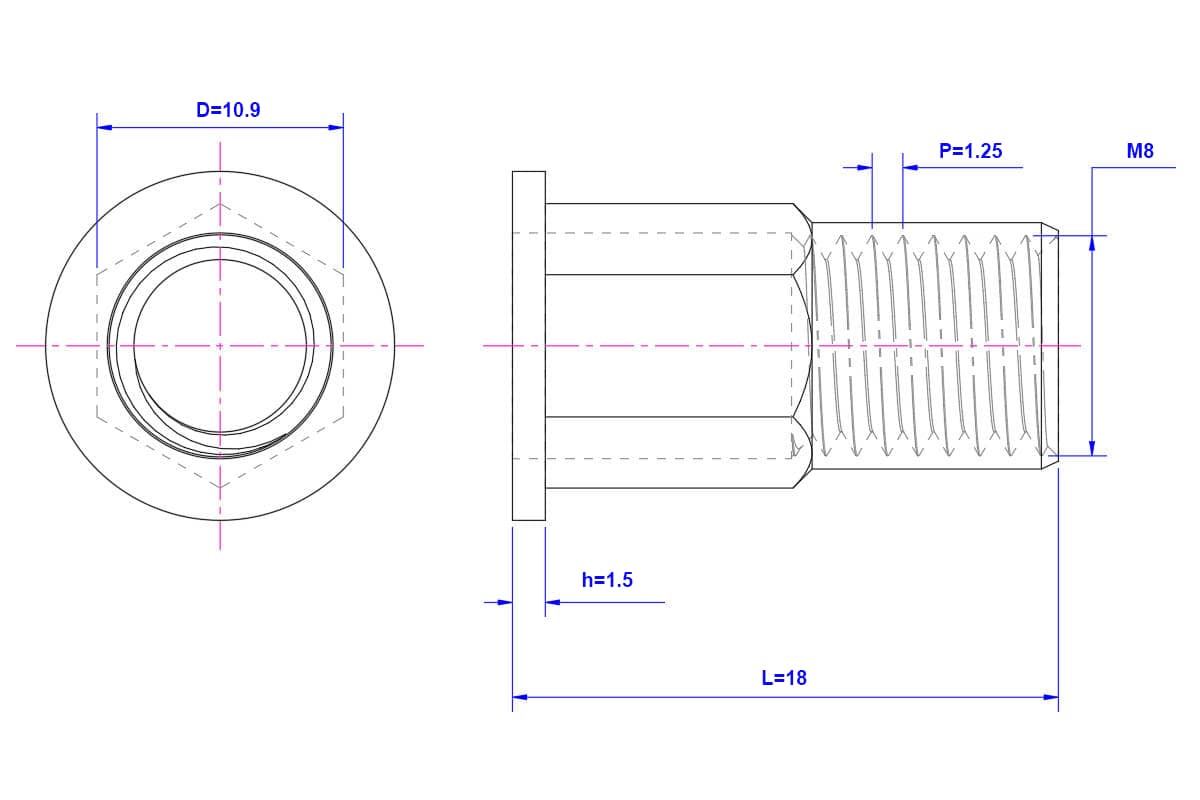 Flat-Head-Half-Hexagon-Riveted-Nut-M8