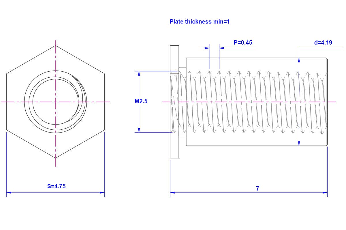 Flat-Head-Hexagonal-Self-Clinching-Nut-M2.5X7