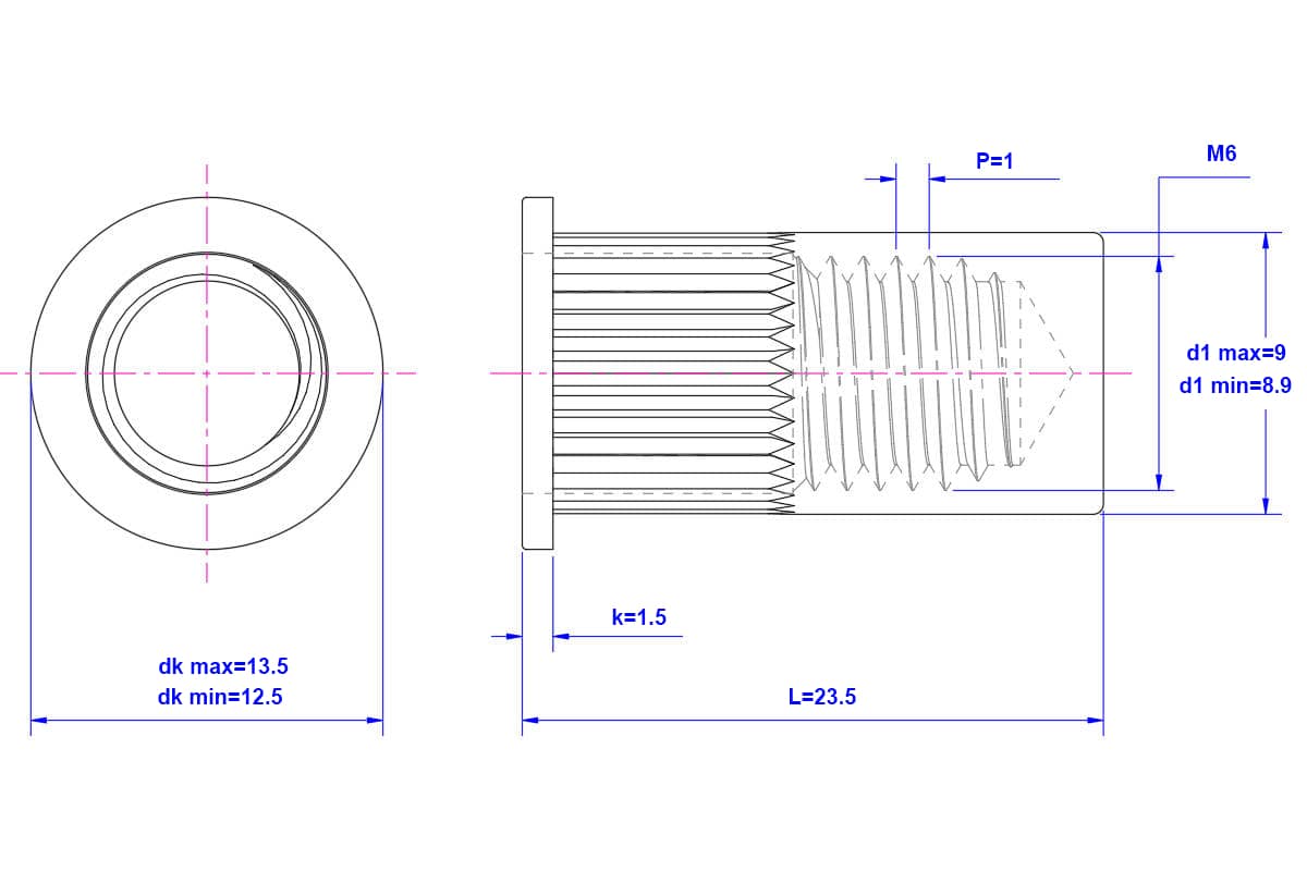 SKU: SN0239003 Categories: 304 - Stainless Steel - Flat Head Knurled Blind Hole Riveted Nut, Flat Head Knurled Blind Hole Riveted Nut, Rivet Nut & Bolt