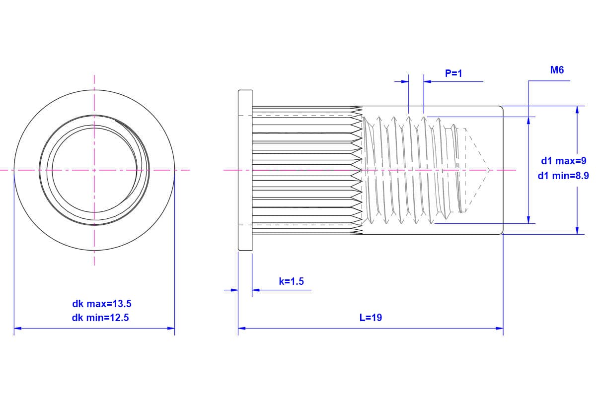 SKU: SN0240003 Categories: Flat Head Knurled Blind Hole Riveted Nut, Rivet Nut & Bolt, White Zinc - Flat Head Knurled Blind Hole Riveted Nut
