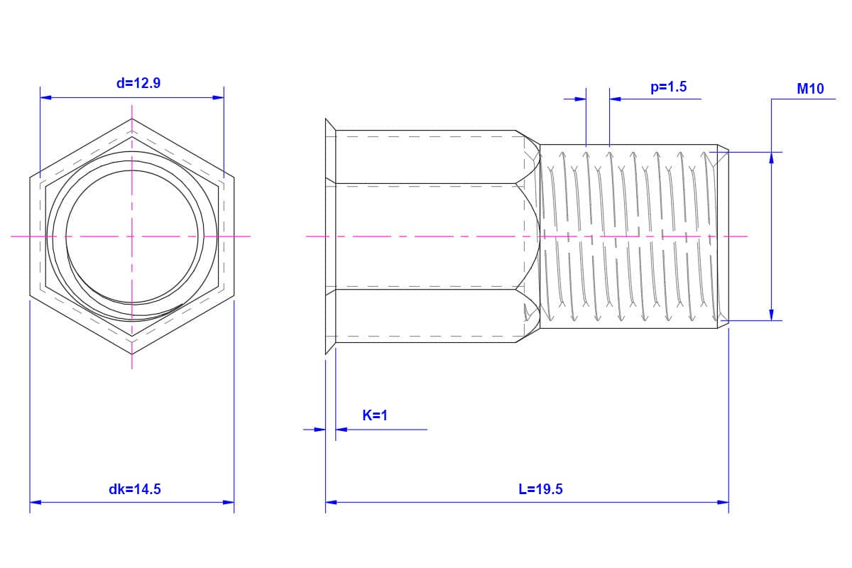Small-Head-Half-Hexagon-Riveted-Nut-M10