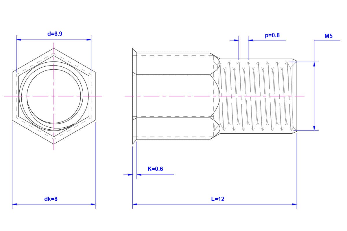 SKU: SN0238003 Categories: Rivet Nut & Bolt, Small Head Half Hexagon Riveted Nut, White Zinc - Small Head Half Hexagon Riveted Nut