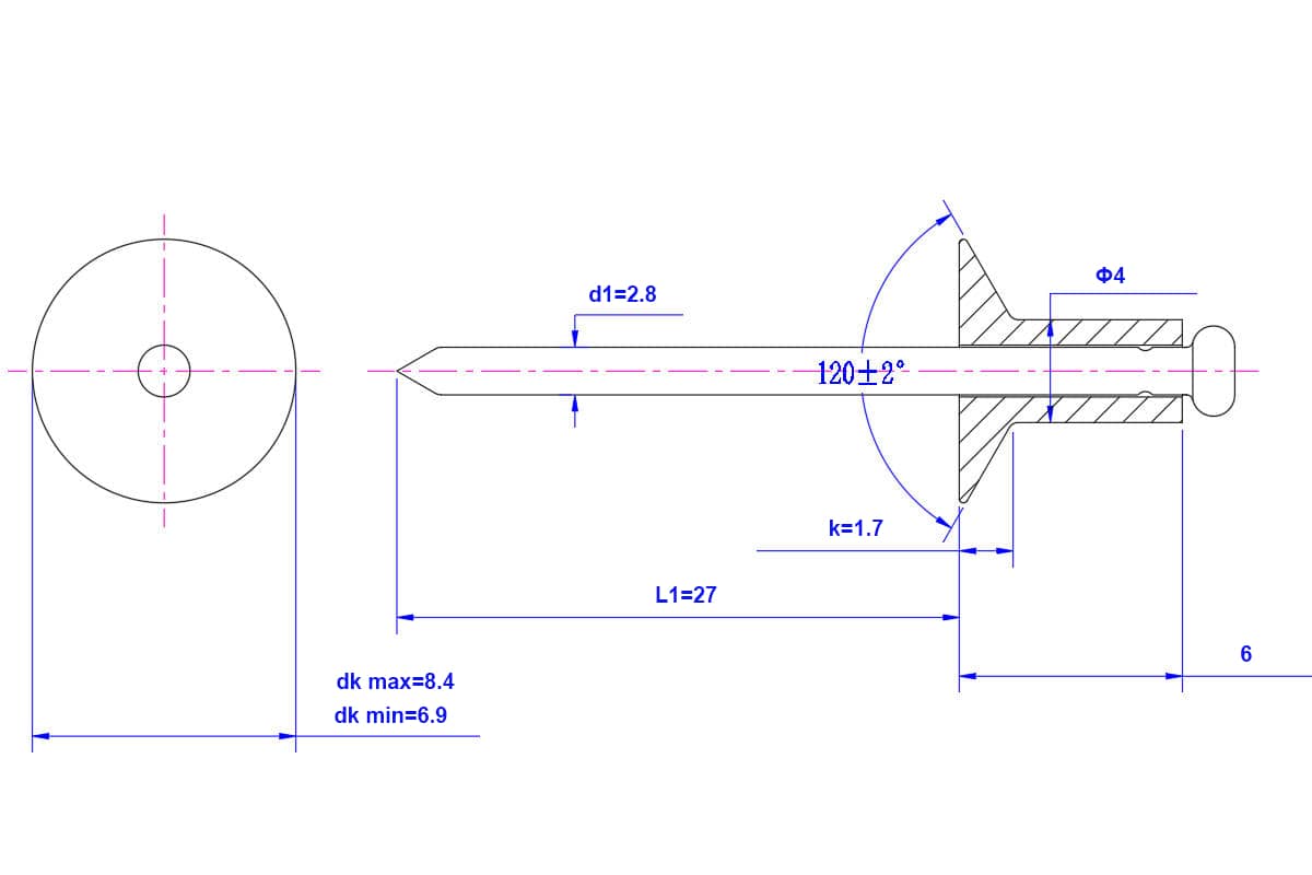 Φ4X6mm – 304 – Stainless Steel – Countersunk Head Blind Rivet