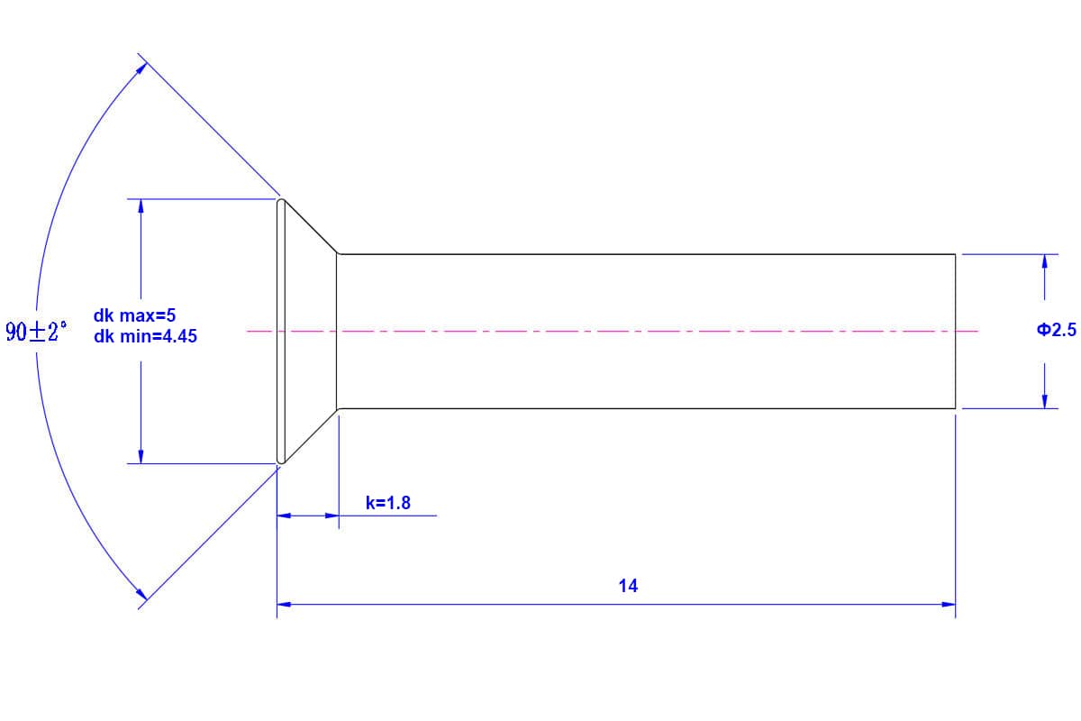 Φ2.5X14mm – 304 – Stainless Steel – Countersunk Head Rivet