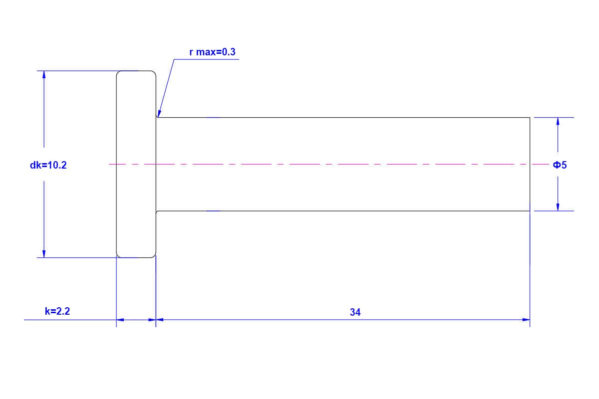 Φ5X34mm – 304 – Stainless Steel – Flat Head Rivet