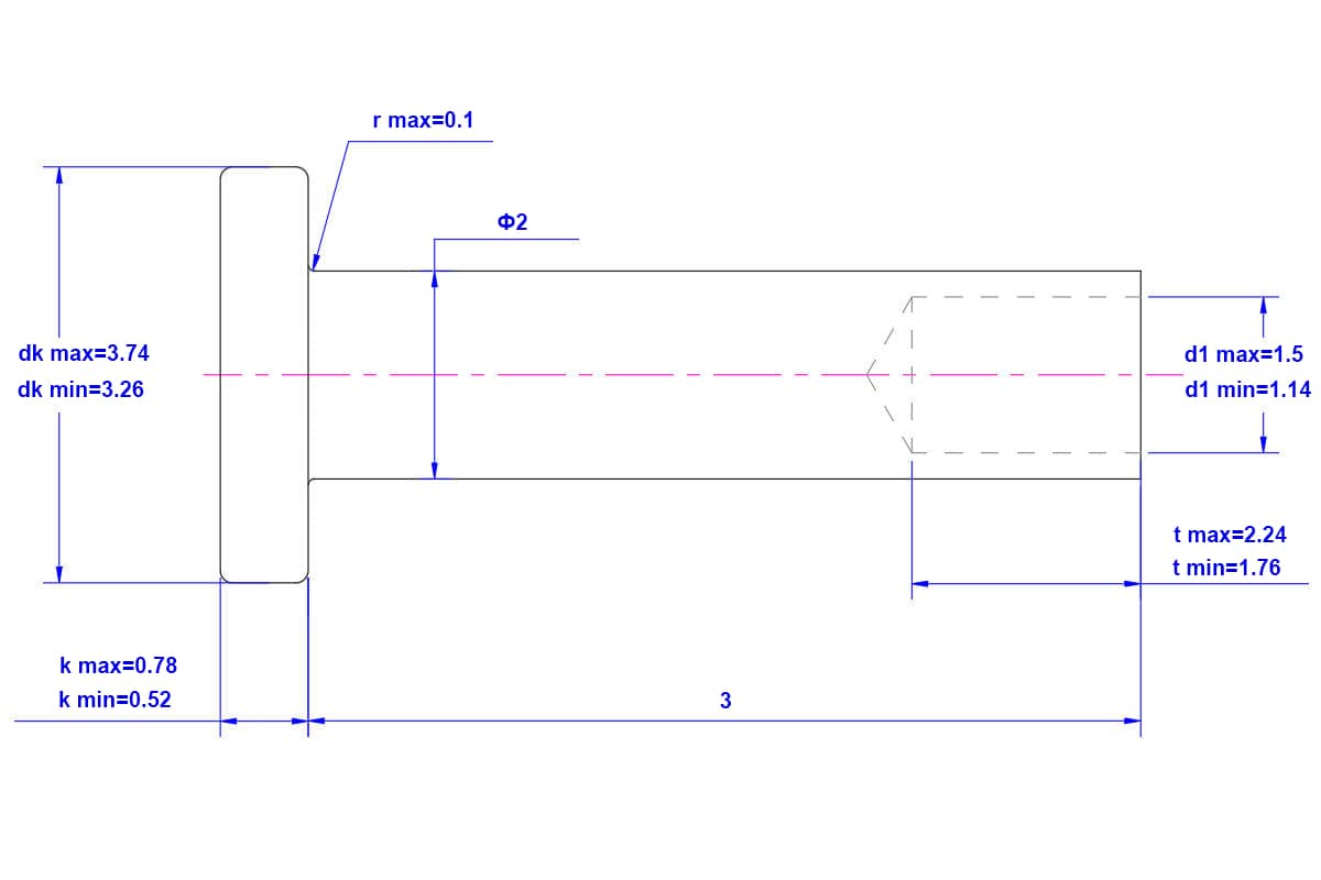 Flat-Head-Semi-Tubular-Rivet-M2X3