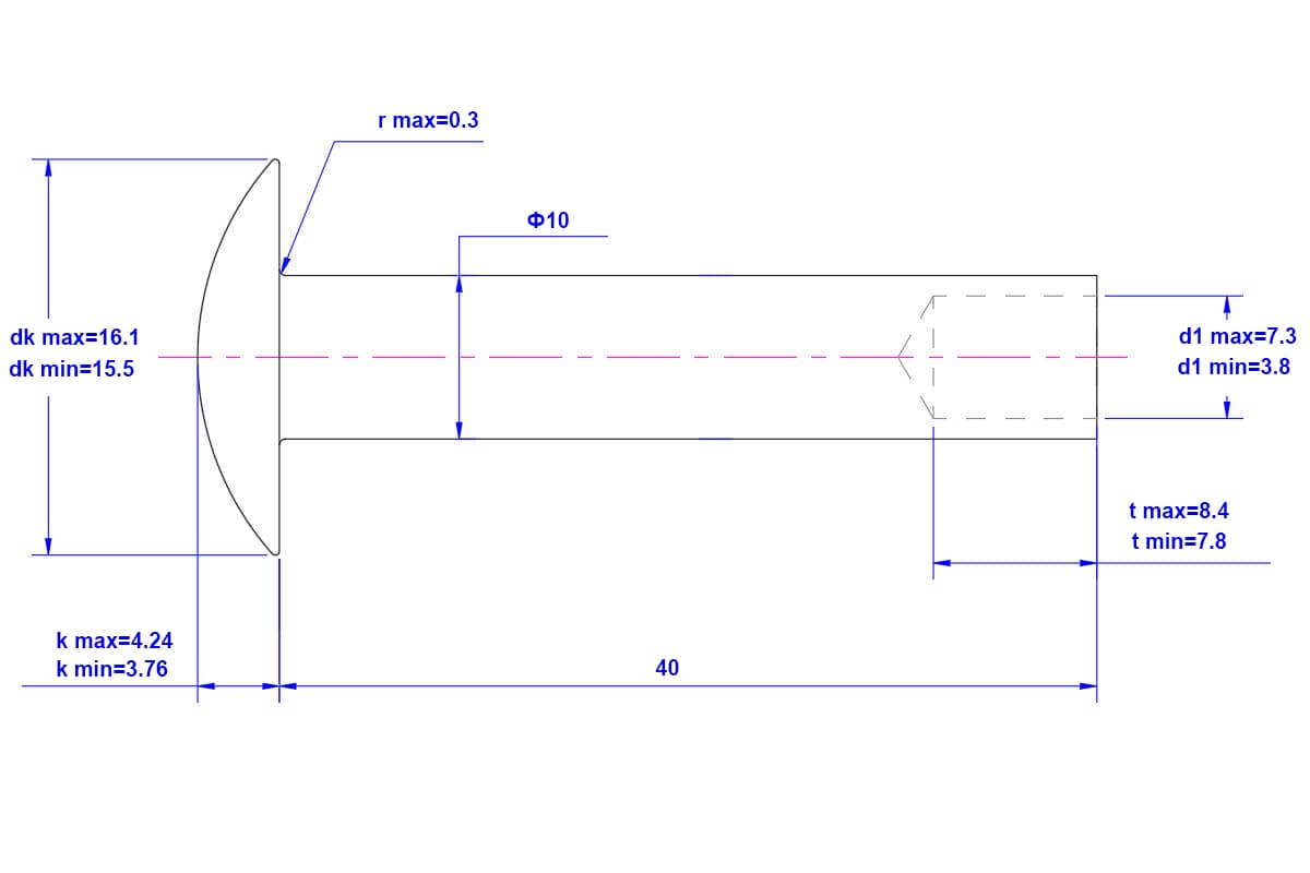 Φ10X40mm – 304 – Stainless Steel – Mushroom Head Semi-Tubular Rivet
