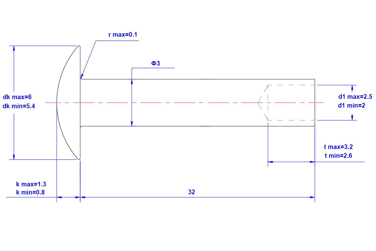 Φ3X32mm – 304 – Stainless Steel – Mushroom Head Semi-Tubular Rivet