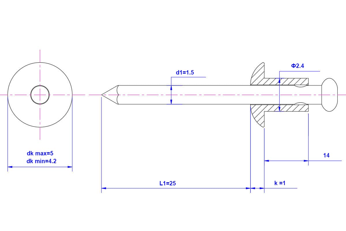 Φ2.4X14mm – 304 – Stainless Steel – Round Head Blind Rivet