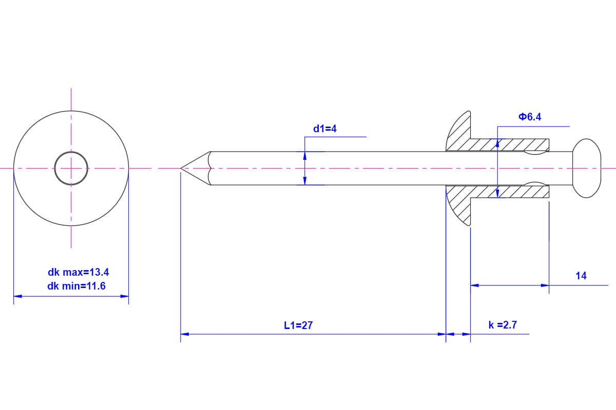 Φ6.4X14mm – Aluminum / Steel – Round Head Blind Rivet