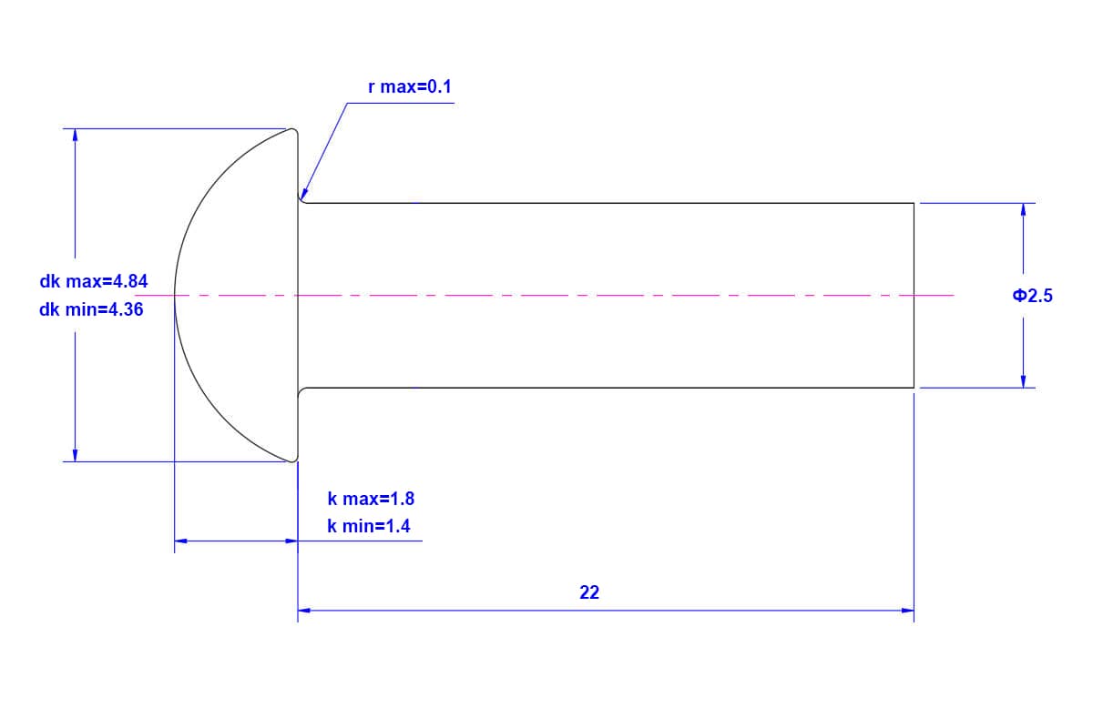 Φ2.5X22mm – 304 – Stainless Steel – Round Head Rivet