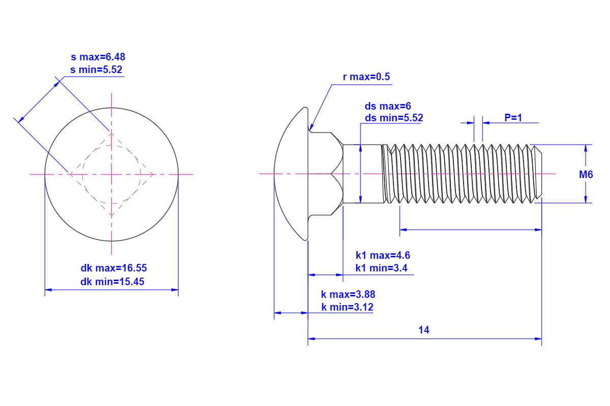 M6X14mm – 304 – Stainless Steel – Carriage bolt