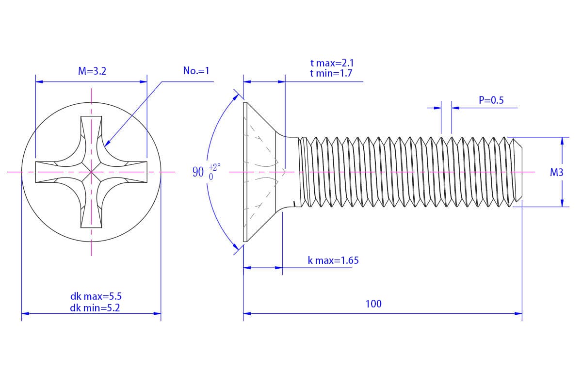Home Shop Screw & bolt Countersunk cross-recessed screw Stainless steel - Countersunk cross-recessed screw 304 - Black Zinc - Stainless steel - Countersunk cross-recessed screw M3X100mm – 304 – Black Zinc – Stainless steel – Countersunk cross-recessed screw