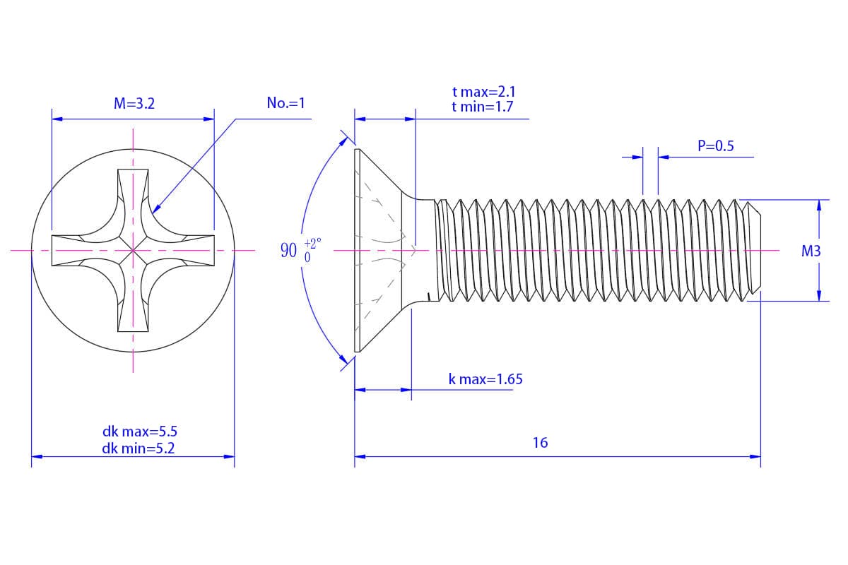 Home Shop Screw & bolt Countersunk cross-recessed screw Stainless steel - Countersunk cross-recessed screw 304 - Black Zinc - Stainless steel - Countersunk cross-recessed screw M3X16mm – 304 – Black Zinc – Stainless steel – Countersunk cross-recessed screw