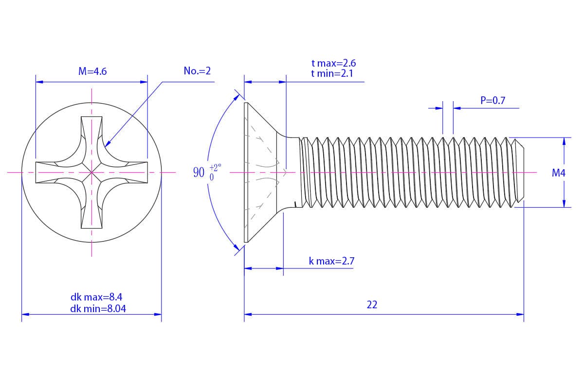 Countersunk-cross-recessed-screw-M4X22