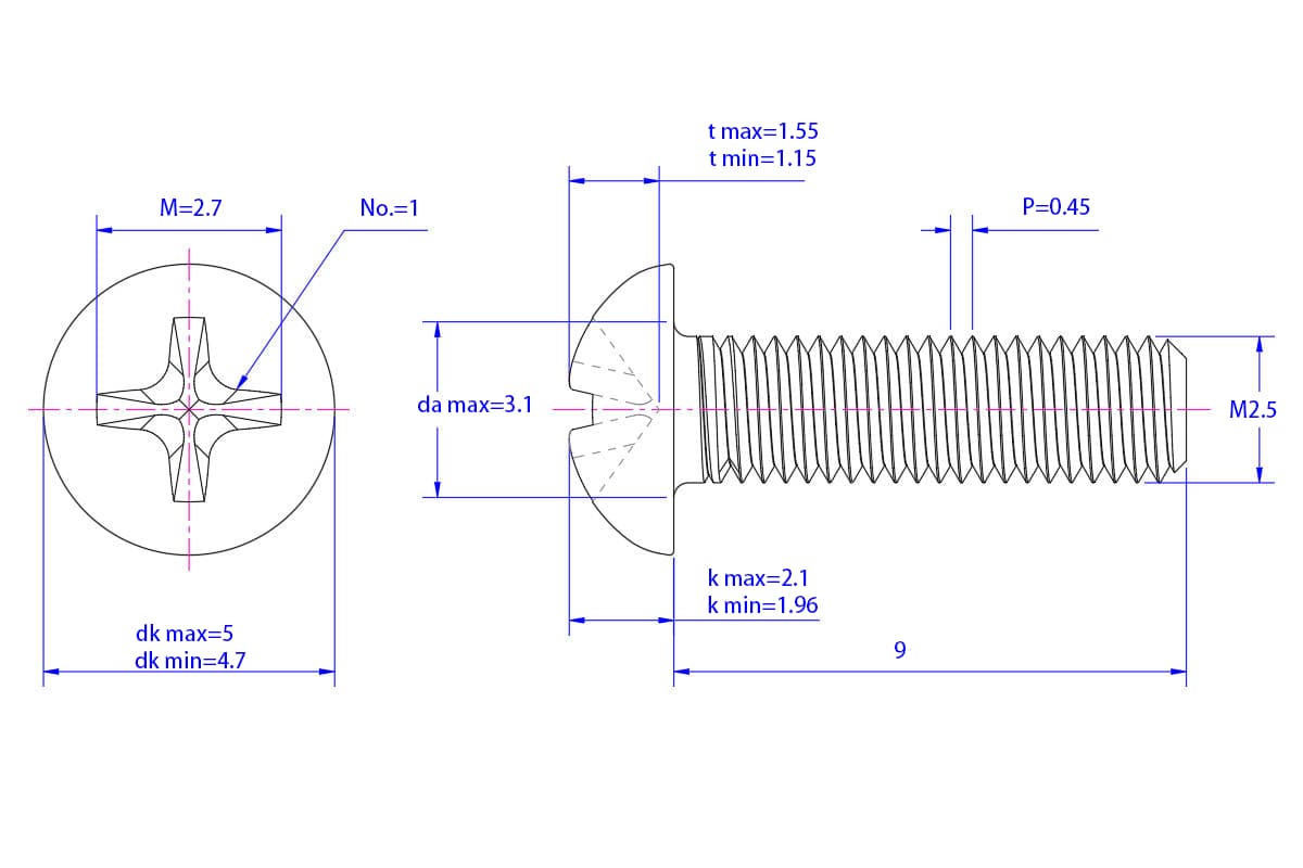 Cross-recess-pan-head-screw-M2.5X9