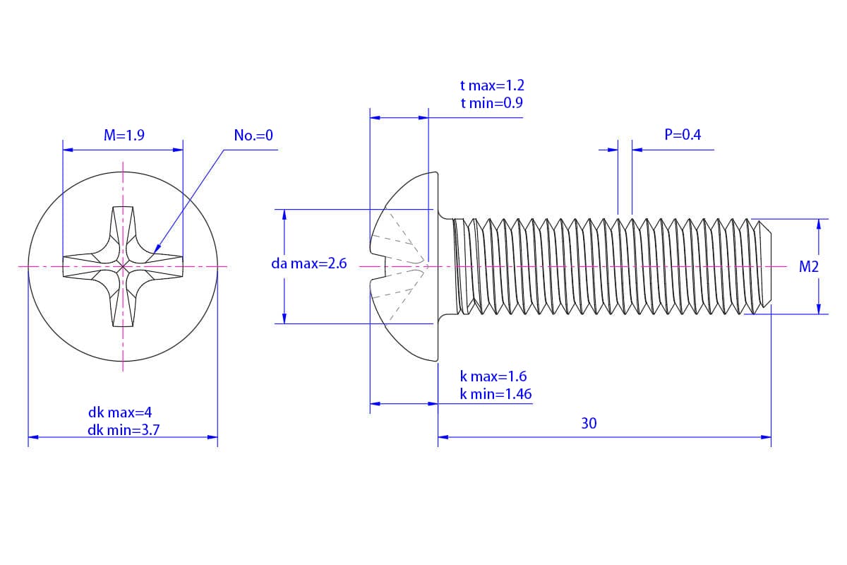 Cross-recess-pan-head-screw-M2X30