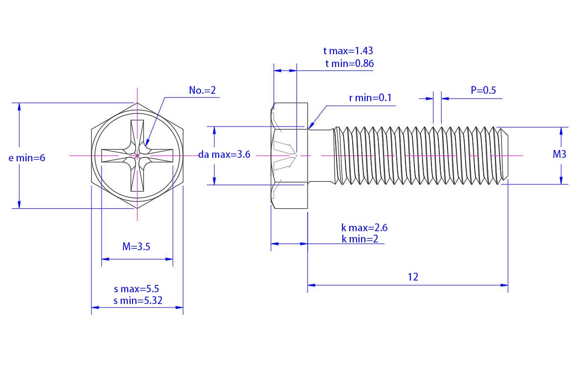 Cross-recessed-hexagon-bolt-M3X12