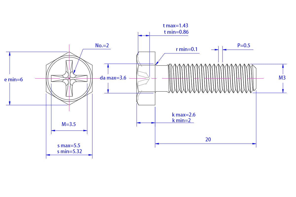 Cross-recessed-hexagon-bolt-M3X20