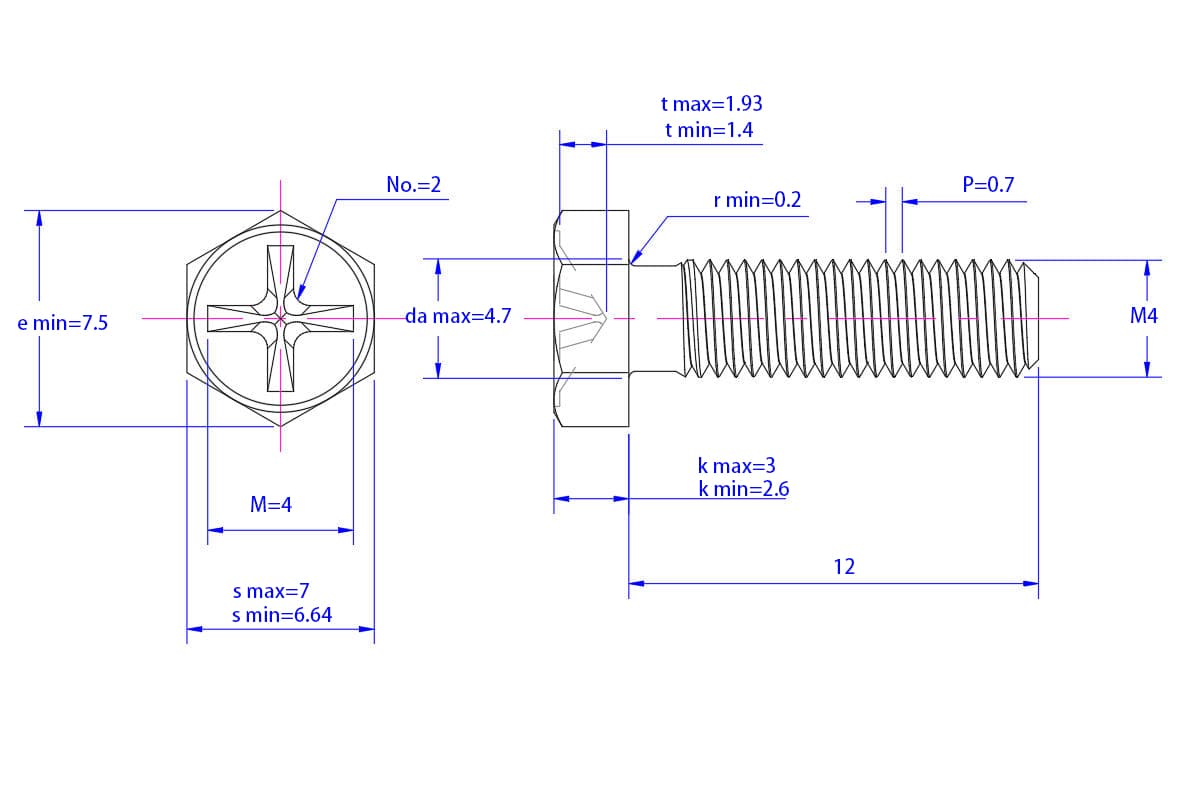 Cross-recessed-hexagon-bolt-M4X12