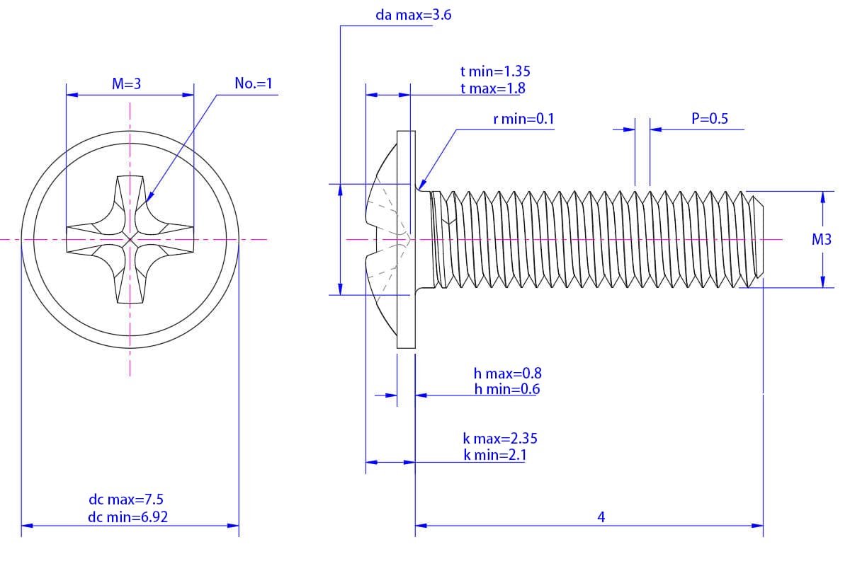 Cross-Recessed-Pan-Head-Screws-with-Collar-M3X4