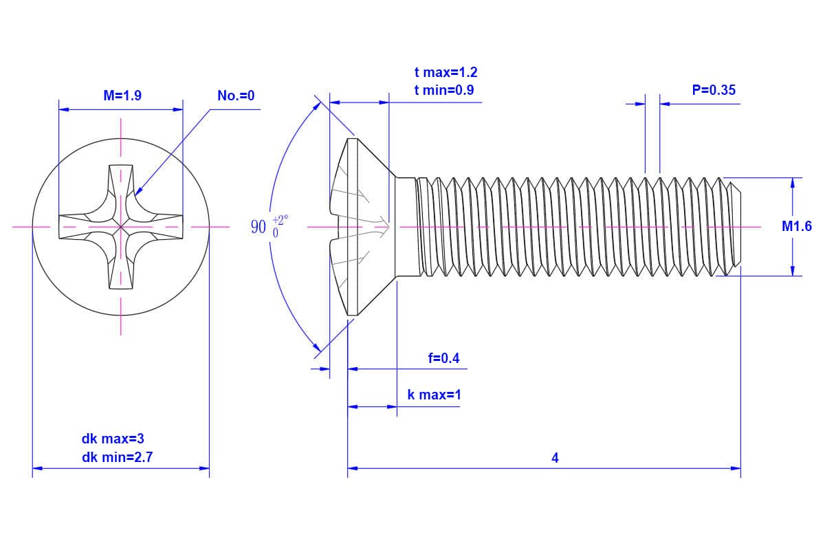 M1.6X4mm – 304 – Stainless steel – Cross recessed raised countersunk head screw