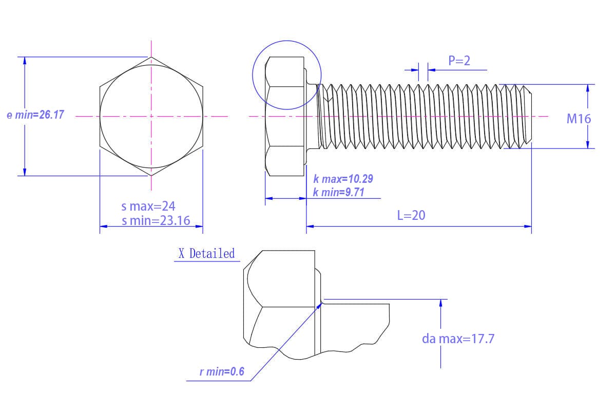 M16X20mm – Grade 8.8 – White Zinc – Hexagon bolt