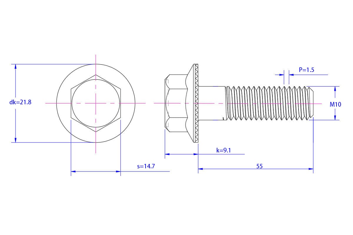 Hexagon-flange-bolt-Serrated-M10X55