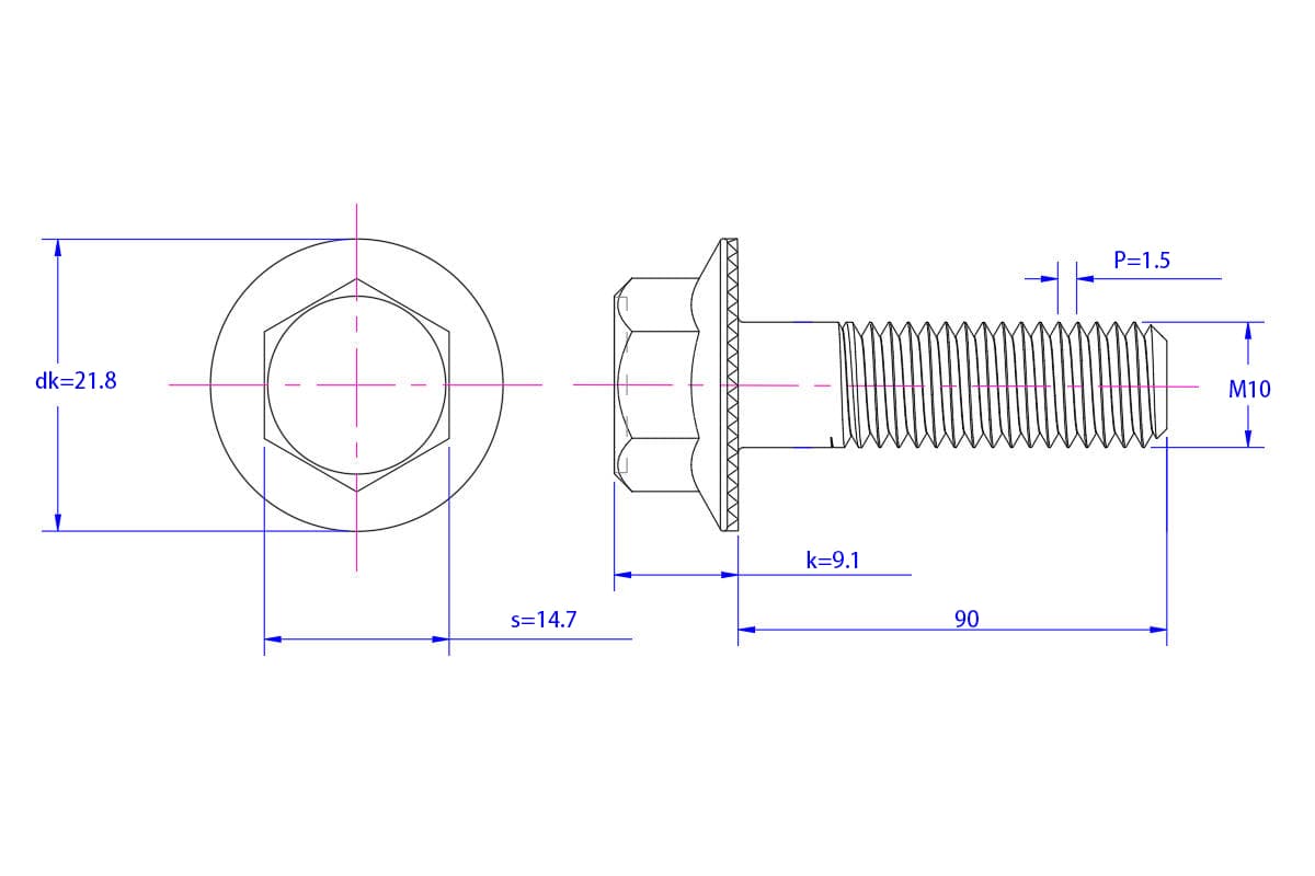 Hexagon-flange-bolt-Serrated-M10X90