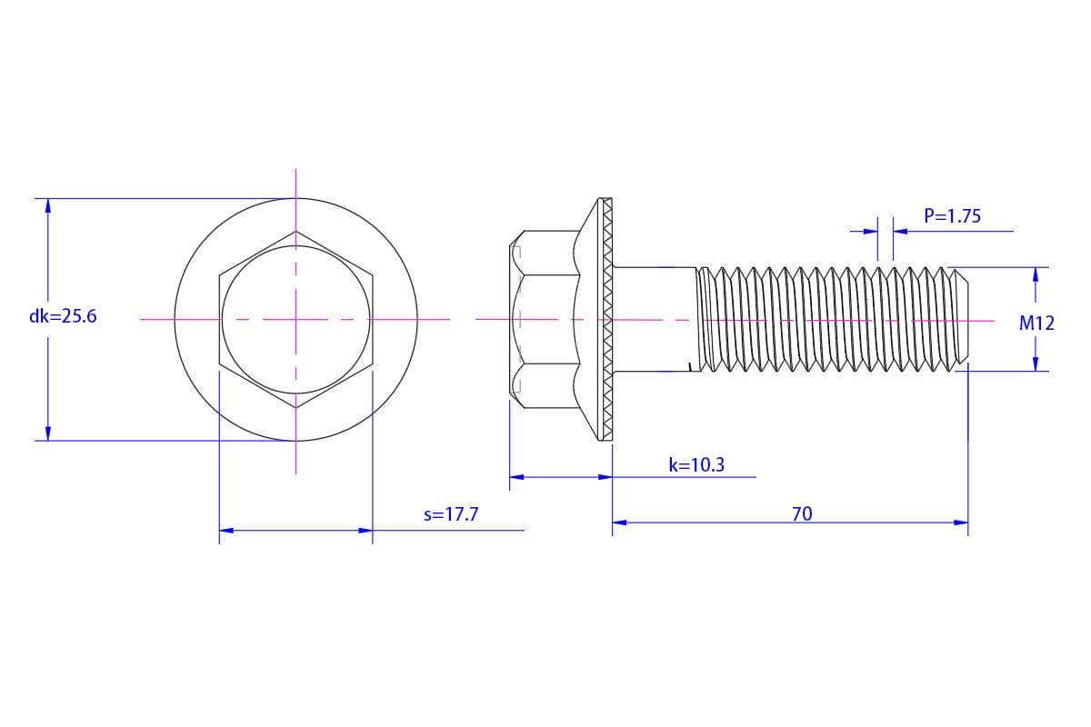 Hexagon-flange-bolt-Serrated-M12X70