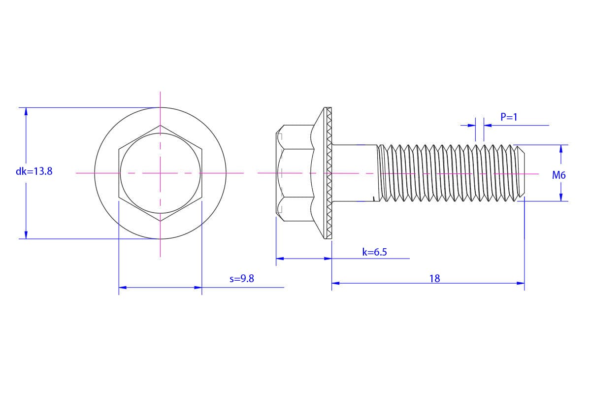 M6X18mm – 304 – Stainless Steel – Serrated – Hexagon flange bolt