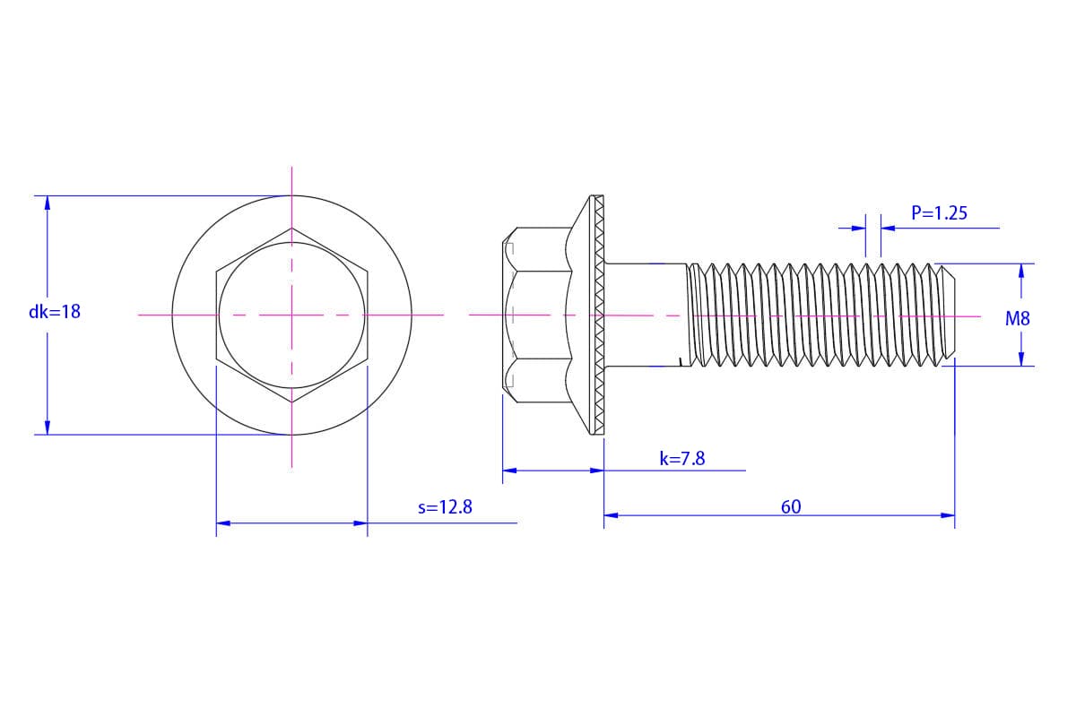 Home Shop Screw & bolt Hexagon flange bolt 304 - Stainless Steel - Serrated - Hexagon flange bolt M8X60mm – 304 – Stainless Steel – Serrated – Hexagon flange bolt