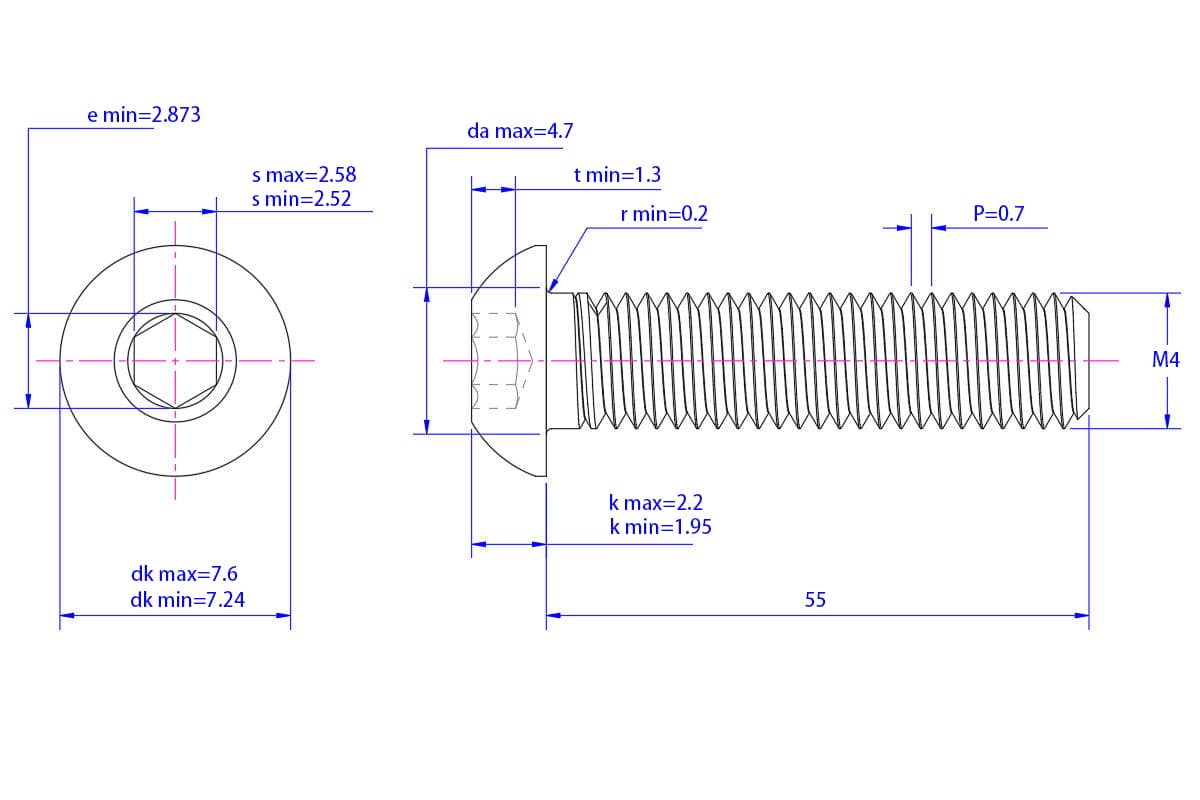 M4X55mm – 304 – A2-70 – Stainless steel – Hexagon socket button head screw