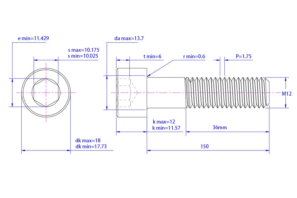 Hexagon-socket-cap-screw-M12X150-half-thread