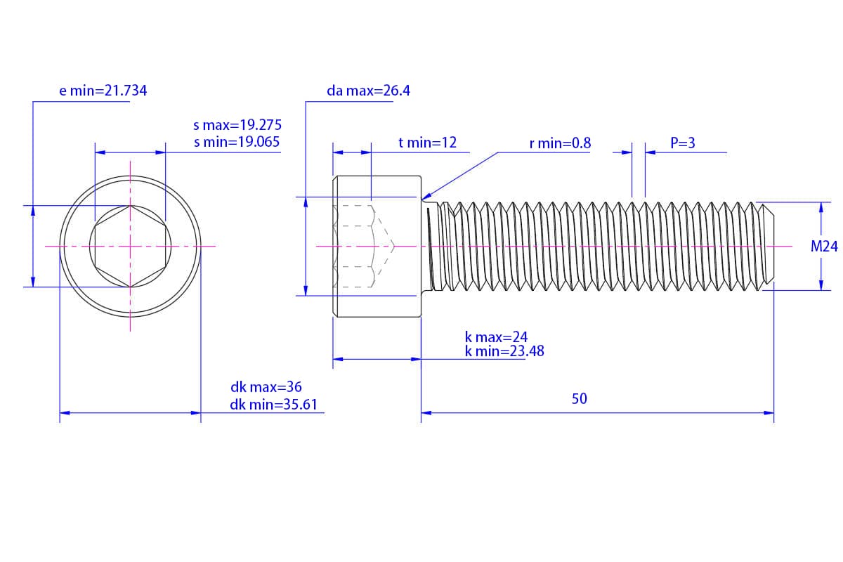 Home Shop Screw & bolt Hexagon socket cap screw Black Oxide - Hexagon socket cap screws 8.8 - Black Oxide - Hexagon socket cap screws M24X50mm – Grade 8.8 – Black Oxide – Hexagon socket cap screw