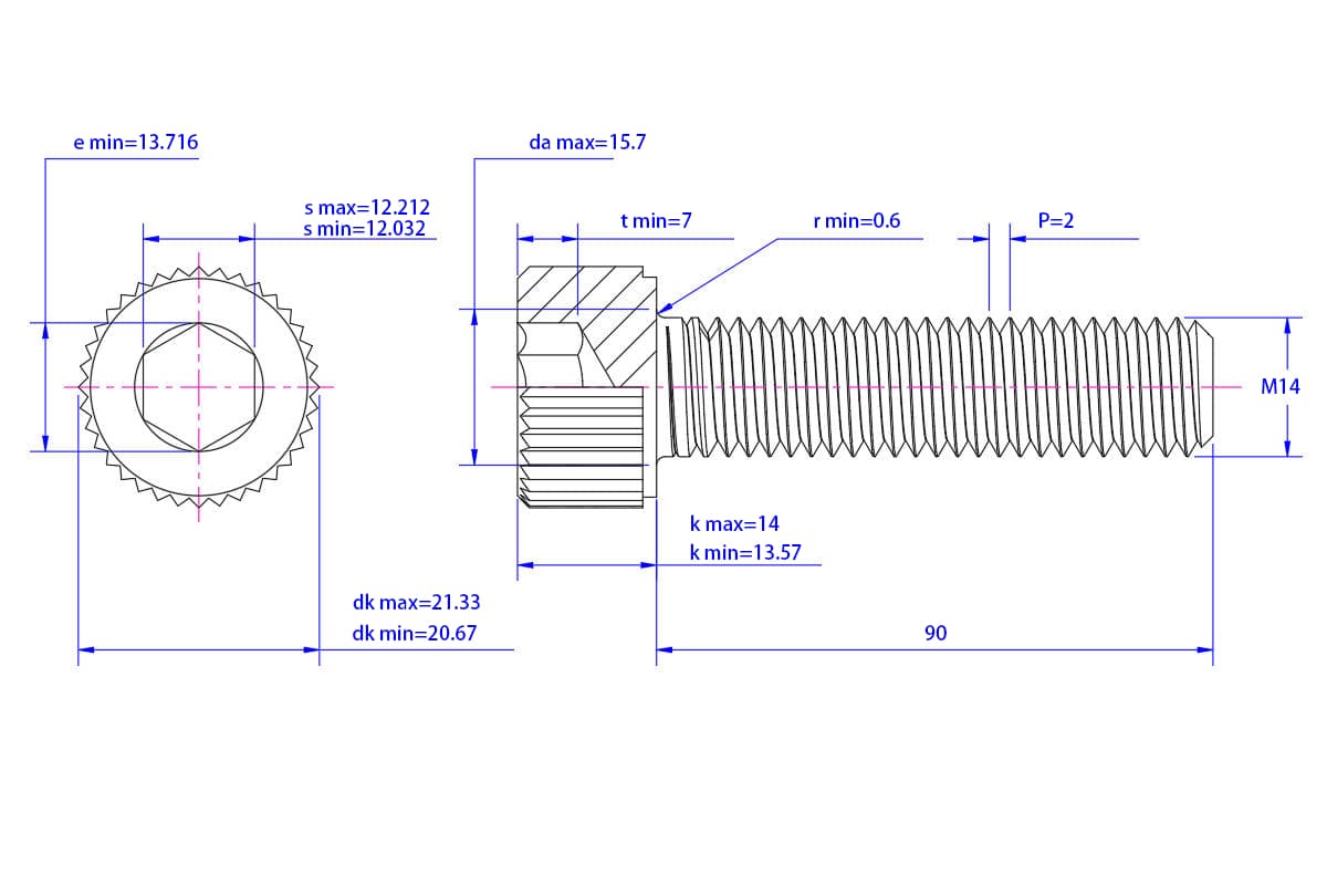 Hexagon-socket-knurled-heads-cap-screw-M14X90